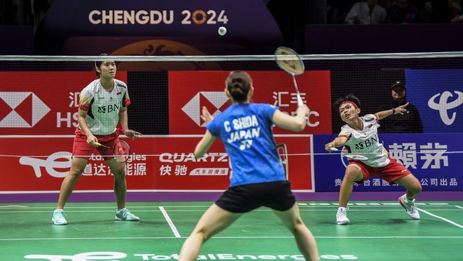 china - Ganda putri Indonesia Siti Fadia Silva Ramadhanti dan Lanny Tria Mayasari kalah atas wakil Jepang dalam kualifik asi grup Piala Uber 2024. Skor kini 1-1.