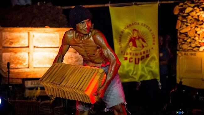Majalengka - Kontes binaraga pekerja pabrik genteng digelar di Jatiwangi di Majalengka. Begini aksi mereka.