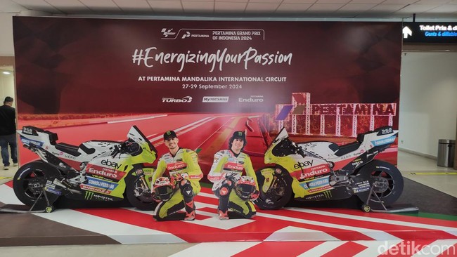Wisatawan yang mendarat di Bandara Internasional Lombok langsung disambut figura rider MotoGP dan kendaraannya. (Foto: Bayu Baskoro/detikcom)