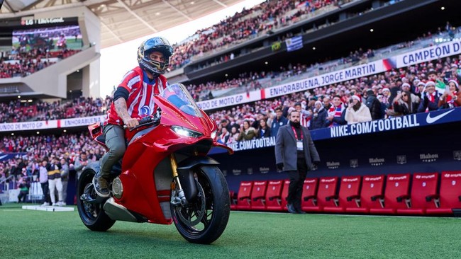 Jakarta - Jorge Martin mengendarai motornya masuk ke lapangan bola menjelang sebuah pertandingan di Liga Spanyol. Simak momen tersebut!