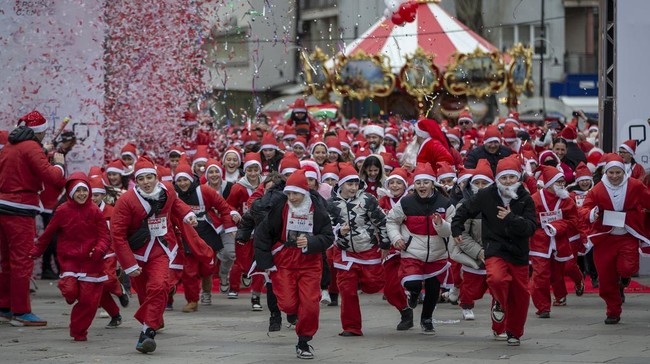 Kosovo - Ribuan orang mengikuti lomba lari tahunan Santa di ibu kota Kosovo, Pristina. Aksi ini sebagai penggalangan dana untuk mendukung anak-anak di rumah sakit.