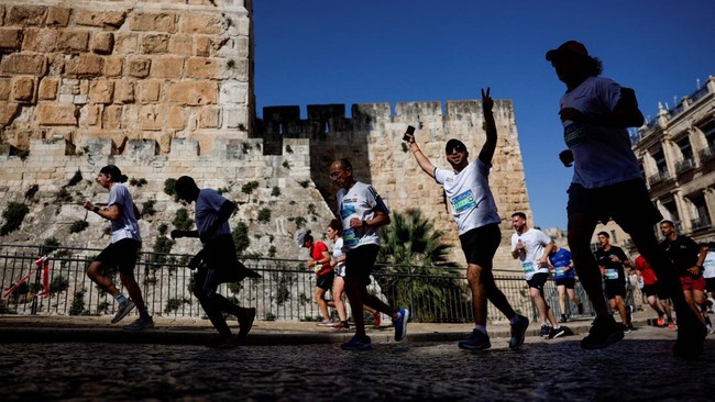 Yerusalem - International Jerusalem Marathon sukses digelar. Ajang lari tersebut menyajikan pemandangan gedung-gedung tua di Kota Suci Yerusalem.