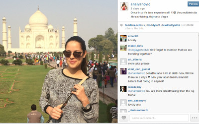 Petenis Serbia Ana Ivanovic akhirnya bisa mendatangi satu lokasi plesiran impiannya. Dia benar-benar bisa berada begitu dekat dengan Taj Mahal yang ada di Agra, India.