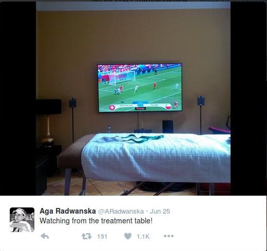 Radwanska mengaku tak pernah melewatkan pertandingan Polandia di Piala Eropa. Lewat akun media sosialnya, Radwanska mengunggah foto dirinya kala menonton laga Polandia versus Irlandia Utara dan pertandingan babak 16 besar melawan Swiss.