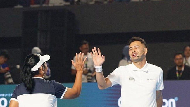 Acara yang dihelat di Tennis Indoor Senayan, Jumat (23/6/2023) kemarin itu dibagi dalam beberapa partai seperti Exhibition Charity Match, Women's Doubles dan Men's Doubles. Di partai Exhibition Charity Match, Raffi Ahmad akan berpasangan dengan Yayuk Basuki, berhadapan dengan Desta dan Angelique Widjaja.