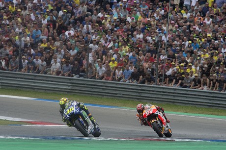 Lorenzo, Rossi, Marquez, dan Andrea Iannone terlibat dalam aksi saling susul berulang kali yang sangat menegangkan. Total ada 50 kejadian saling susul dalam balapan yang pada akhirnya dimenangkan Marquez itu.