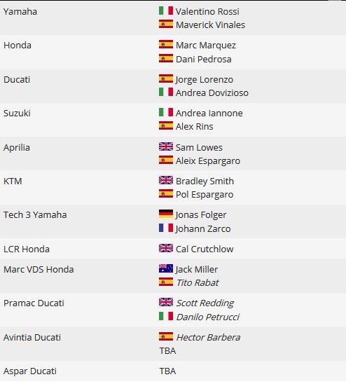 Berikut Line-up MotoGP 2017 sejauh ini: