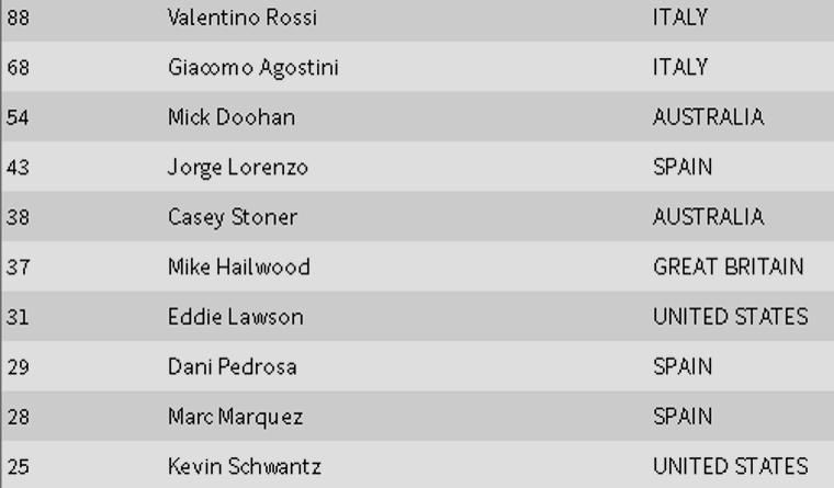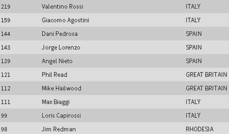 Podium terbanyak di seluruh kelas ![]() |