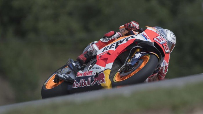Sesi latihan ketiga di Brno, Sabtu (5/8/2017) sore WIB, langsung menghadirkan kibaran bendera merah di menit-menit awal setelah Alvaro Bautista, Marquez, dan Cal Crutchlow terjatuh di Turn 10. Kondisi mereka baik-baik saja.