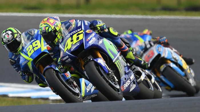 Balapan MotoGP Australia, Minggu (22/10/2017), berjalan seru. Karakteristik sirkuit turut membuat adanya sejumlah aksi saling salip di antara sejumlah pebalap.