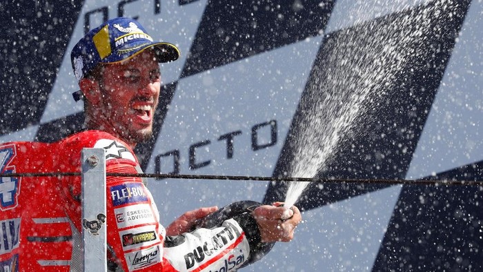 Dovizioso tampil sebagai pemenang dalam balapan MotoGP San Marino di sirkuit Misano, Minggu (9/9/2018) malam WIB. Rider Ducati ini finis di depan Marc Marquez dan Cal Crutchlow yang berada di posisi dua-tiga.