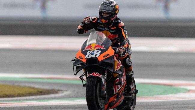 "Membalap 20 lap di bawah guyuran hujan dan latihan itu berbeda. Anda lebih bisa mengeksplor saat latihan," ujar Miguel Oliveira dalam konferensi pers usai balapan.