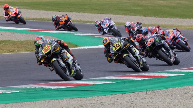 MotoGP Italia 2022 dimenangi oleh rider Ducati, Francesco Bagnaia. Pecco pertama kali menyentuh garis finis dalam 23 lap di Sirkuit Mugello, Italia, Minggu (29/5/2022), dengan catatan waktu 41 menit 18,923 detik.