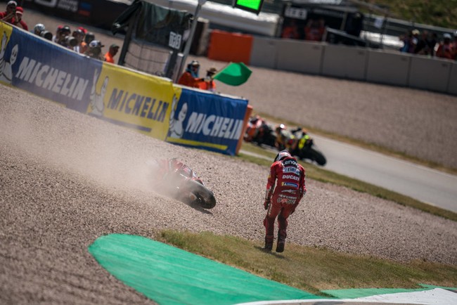 Terakhir, Francesco Bagnaia jatuh di MotoGP Jerman pada akhir pekan lalu, Minggu (19/6). Padahal baru empat lap, Pecco yang bersaing di garis depan kontra Fabio Quartararo jadinya harus akhiri balapan lebih cepat.