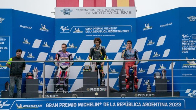 Sukses Marco Bezzecchi, Johann Zarco, dan Alex Marquez di MotoGP Argentina 2023 rupanya menjadi sebuah rekor. Sebab, untuk kali pertama sejak 1996, race dikuasai tiga rider tim satelit.
