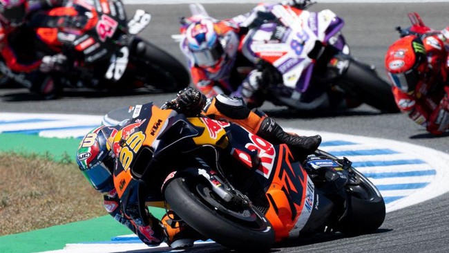 Brad Binder berhasil memenangi sprint race MotoGP Spanyol 2023. KTM menempatkan dua rider di podium, Jack Miller finis ketiga.