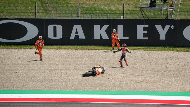 Marquez memulai MotoGP Italia di Sirkuit Mugello, Minggu (11/6/2023) malam WIB, dari posisi kedua. Namun ia gagal memaksimalkannya untuk mendapatkan hasil setelah tergelincir pada putaran keenam.
