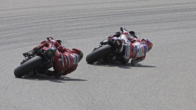Rider Ducati itu start terdepan pada balapan di Sirkuit Sachsenring, Minggu (18/6/2023) malam WIB. Bagnaia sempat memimpin balapan di dua putaran pertama, sebelum Martin mengambil alih posisi terdepan.