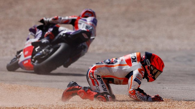 Simak Video "Video: Detik-detik Marquez Jatuh di Misano, Penonton Sorak Sorai"
