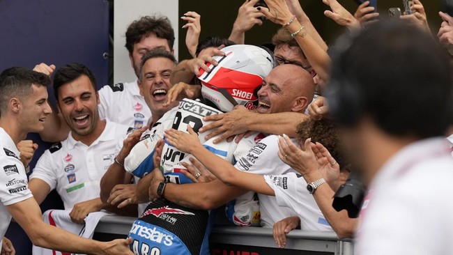 Marc Marquez menjadi pemenang MotoGP San Marino 2024. Hujan di Misano membawa berkah untuk Baby Alien.
