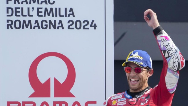 Bastianini tampil sebagai pemenang dalam balapan di Misano World Circuit Marco Simoncelli, Minggu (22/9/2024) malam WIB. Manuvernya di putaran terakhir untuk menyalip Jorge Martin memenangkan balapan.