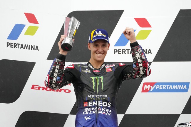 Quartararo finis kedua di tahun 2022 dan finis ketiga di tahun 2023. Terakhir Quartararo naik podium di MotoGP, adalah di MotoGP Mandalika 2023 itu.