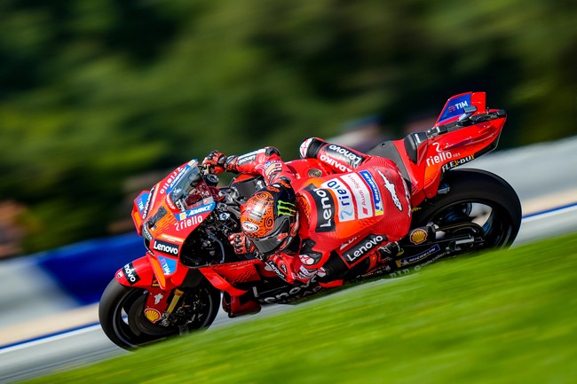 Balapan dimulai! Francesco Bagnaia langsung ngacir ke posisi pertama diikuti Enea Bastianini yang memulai dari posisi keempat. Pedro Acosta turun ke posisi ketiga.