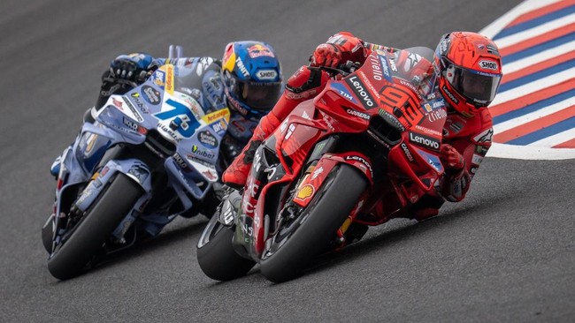 Sprint Race MotoGP Amerika Serikat di Circuit of The Americas berlangsung pada Minggu (30/3/2025) dini hari WIB. Marc Marquez start terdepan disusul Fabio Di Giannantonio dan Alex Marquez.