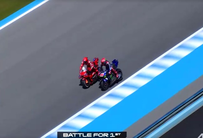 Marquez nyaris terpental, untungnya masih bisa jaga keseimbangan! Petaka kemudian menimpa Quartararo, rider Yamaha itu terjatuh di tiga putaran terakhir.
