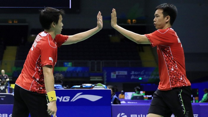 "Kami hanya menerapkan pola permainan kami sendiri. Kami kan sudah sering latihan bersama di Cipayung, sering berganti-ganti partner juga, pasangan muter itu-itu saja," kata Hendra soal pertandingan.