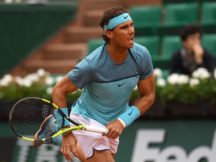 Nadal, unggulan keempat, hanya kehilangan tiga gim untuk mengalahkan petenis Australia nonunggulan Sam Groth 6-1, 6-1, 6-1, dalam laga di lapangan Suzanne Lenglen, Selasa (24/5/2016).