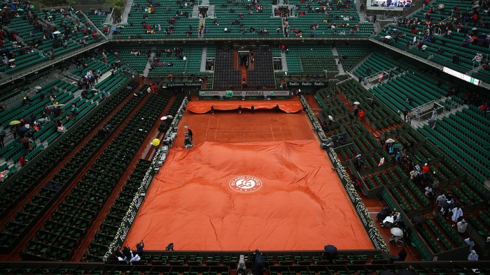 Ini jadi kali kedua secara beruntun di mana pertandingan harus dihentikan karena hujan. Sebelumnya duel tunggal putri antara Simona Halep melawan Samantha Stosur dan Tsvetana Pironkova kontra Agnieszka Radwanska harus disetop pada Senin (30/5) kemarin.