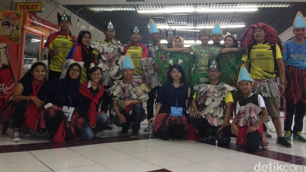 Di antara para penonton itu, ada beberapa pendukung yang mengenakan kostum unik. Ada yang memakai kostum kupu-kupu, sampai perpaduan busana khas Indonesia.