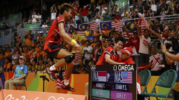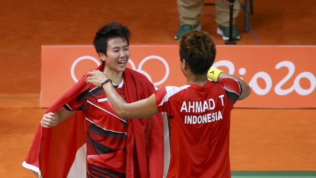 Tontowi/Liliyana meraih medali emas cabang olahraga Bulutangkis nomor ganda campuran usai menang 21-14, 21-12 dalam durasi 45 menit atas pasangan Malaysia Chan Peng Soon/Goh Liu Ying, Rabu (17/8/2016).