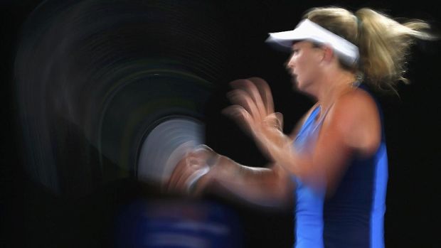Petenis Jerman tersebut tunduk 2-6 dan 3-6 ketika berhadapan dengan petenis AS Coco Vandeweghe di Rod Laver Arena, Minggu (22/1/2017).