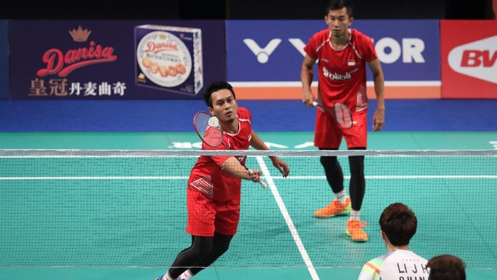 Ahsan/Rian harus mengakui keunggulan Li Junhui/Liu Yuchen pada pertandingan di Odense Sports Park, Rabu (18/10/2017). Mereka kalah dari unggulan ketiga itu dengan skor 23-25 dan 18-21.