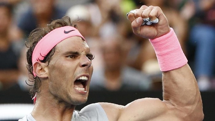 Kemenangan dengan skor 6-3, 6-7 (4-7), 6-3, dan 6-3 berhasil diraih Nadal dalam pertandingan babak 16 besar di Rod Laver Arena, Minggu (21/1/2018).