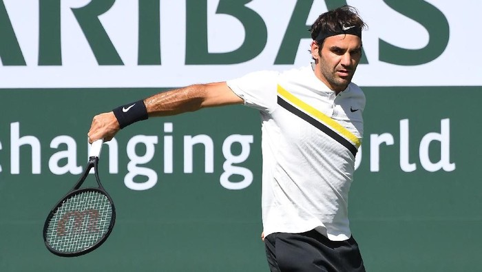 Federer mengalahkan petenis Serbia, Filip Krajinovic, pada pertandingan babak ketiga di Indian Wells Tennis Garden, Indian Wells, California, Amerika Serikat, Senin (12/3/2018) waktu setempat. Petenis Swiss itu menang mudah atas Krajinovic dengan skor 6-2, 6-1.