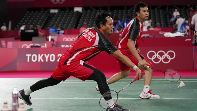 Mohammad Ahsan/Hendra Setiawan mengawali langkahnya di Olimpiade Tokyo 2020 dengan mulus. Mereka menang dua gim langsung atas Jason Anthony Ho-Shue/Nyl Yakura.