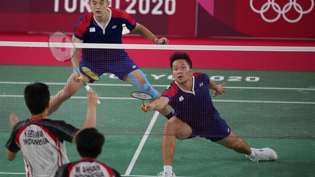 Hendra/Ahsan, yang tampil sebagai unggulan kedua, dipaksa mengakui kehebatan Lee Yang/Wang Chin-Lin di Musashino Forest Sport Plaza, Jumat (30/7/2021). The Daddies kalah straight game dengan skor 11-21 dan 10-21.