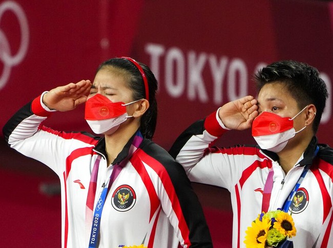 Greysia Polii/Apriyani Rahayu meraih emas cabor bulutangkis Olimpiade Tokyo 2020 nomor ganda putri. Mereka membawa Indonesia menyamai China di pesta olahraga sejagad.