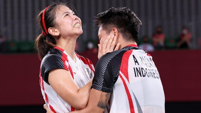 Greysia/Apriyani memenangi medali emas setelah mengandaskan perlawanan pasangan China Chen Qingchen/Jia Yifan dalam duel straight set. Bermain di Musashino Sport Plaza, Senin (2/8/2021), Greysia/Apriyani tampil sebagai pemenang usai menang 21-19, 21-15.