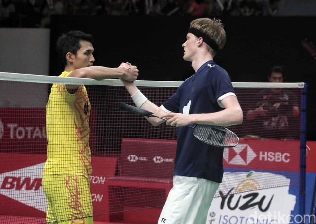 Jonatan Christie batal menghadapi Anders Antonsen di perempatfinal Indonesia Open 2021, Jumat (26/11/2021) ini. Antonsen memutuskan mundur karena mengalami masalah pada otot dadanya.