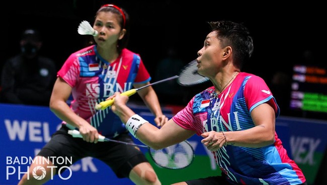 Ganda putri nomor satu Indonesia Greysia Polii/Apriyani Rahayu lolos ke babak kedua All England 2022. Greysia/Apriyani menyingkirkan pasangan Denmark.