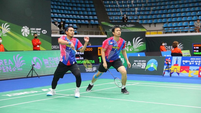 Mohammad Ahsan/Hendra Setiawan menyusul Fajar Alfian/Muhammad Rian Ardianto ke semifinal Korea Open 2022. The Daddies menang atas Choi Solgyu/Kim Wonho.