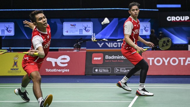 Fajar Alfian/Muhammad Rian Ardianto berhasil ke semifinal Indonesia Masters 2022. Fajar/Rian mendepak wakil Taiwan dengan skor 21-15, 21-18.