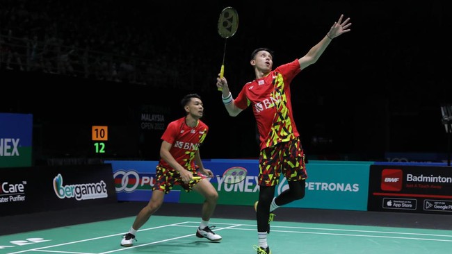 Fajar/Rian lolos ke semifinal Malaysia Open 2022 usai menang straight game atas Ong Yew Sin/Teo Ee Yii di perempatfinal. Dalam pertandingan di Axiata Arena, Kuala Lumpur, Jumat (1/7/2022) malam WIB, Fajar/Rian menang 21-13, 21-9 atas ganda tuan rumah itu.