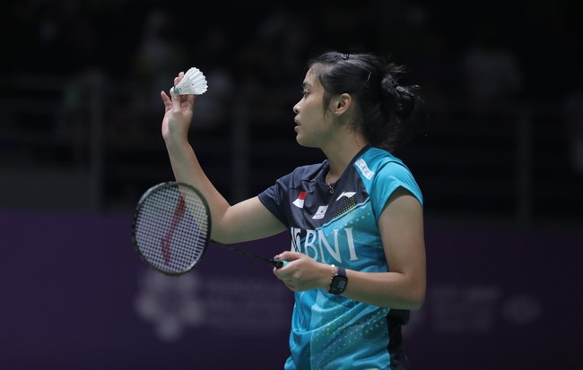 21-15 Akane akhirnya menang karena Gregoria gagal kembalikan pukulan Akane.