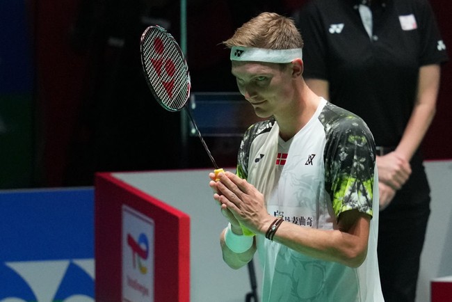 Viktor Axelsen kalahkan Anthony Ginting dengan skor sama di dua gim, 21-10. Axelsen perpanjang catatan kemenangannya atas Putra Cimahi itu.