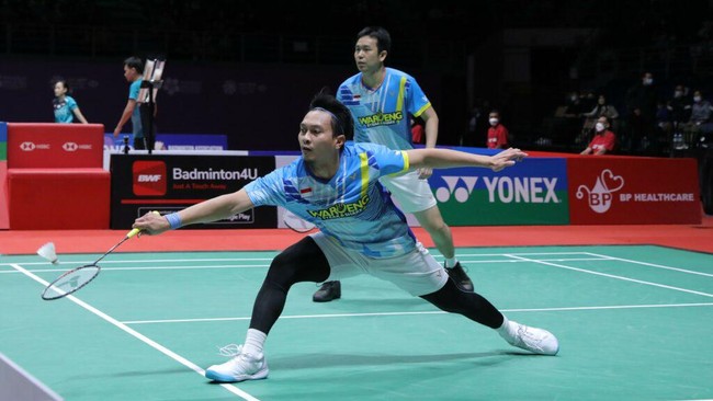 Mohammad Ahsan/Hendra Setiawan tersingkir di babak pertama India Open 2023. Menghadapi Liang Wei Keng/Wang Chang (China), The Daddies tumbang tiga gim 14-21, 21-18, 21-23.